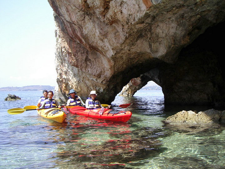 The sea kayak offers you the opportunity to admire the Kefalonia’s natural coastal environment, as well as its distinctive contrasts: Cypress and pine trees that reach the sea, impressive calcareous cliffs, exquisite underwater rock formations, exceptional geological phenomena, beautiful and secluded beaches, either with sand or pebbles, crystal clear waters and in the distance, quaint fishing villages and traditional settlements.